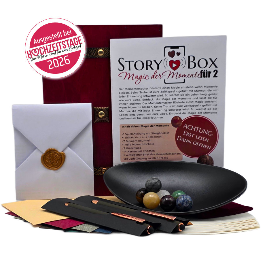 Ein geführtes Audio-Ritual, das 7 gemeinsame Erinnerungen in 7 Umschlägen festhält – mit 7 Steinmurmeln als sichtbarem Anker für die Ehe.